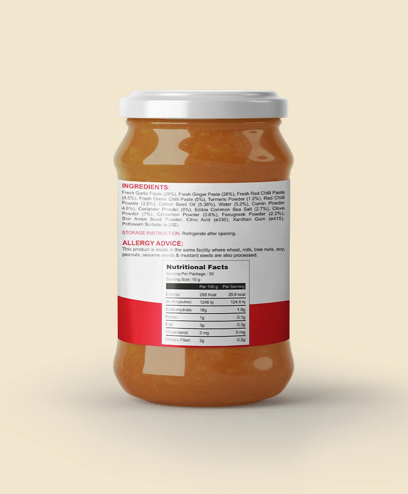 We provide a variety of export-friendly packaging options, such as jars, pouches, and foodservice bulk packs. All packaging is designed for long-distance international shipping while preserving the authentic texture and spice balance of Vindaloo.