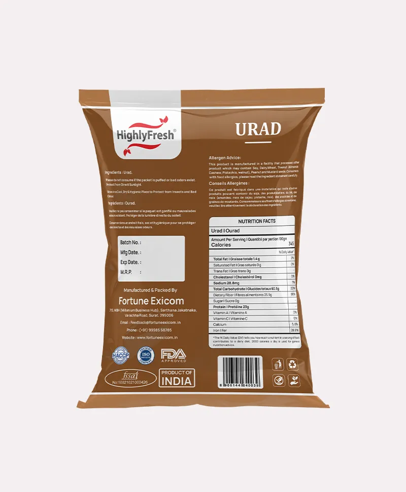 Yes. Fortune Exicom exports HighlyFresh Urad Gotta to major global destinations including the USA, Canada, Europe, Australia, the UK, Latin America, and Mauritius. All products are processed under FSSAI, HACCP, and ISO certified facilities for export consistency.